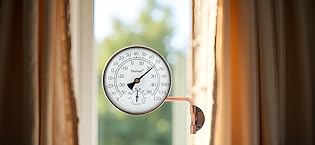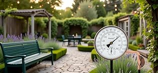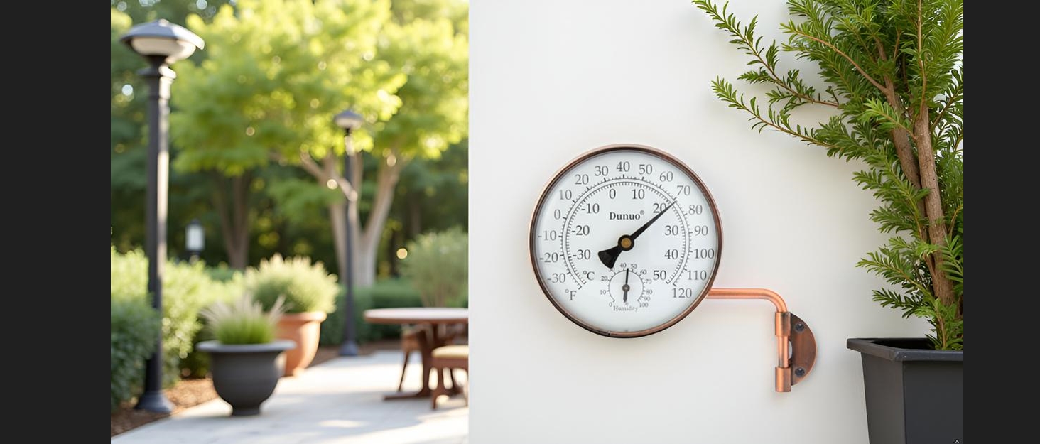 6" Outdoor Thermometer for Greenhouse, Garage and Patio. Weatherproof & Decorative Outside Temperature Gauge for Window, Antique Copper with Humidity (Easy-Read Brass Swivel Design)