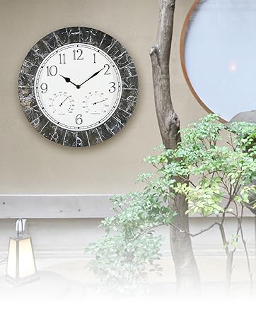 BESTIME 66285A Three-in-one Metal Wall Clock.Thermometer,Hygrometer,Weatherproof,Indoor,Outdoor,Weather Resistant.Whether Industrial,Country,Rustic.